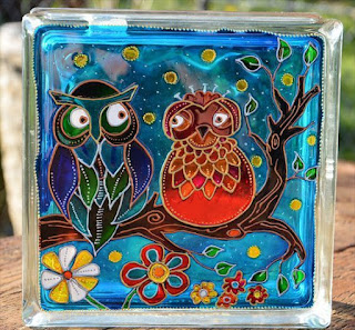 Εκτός από ψηφίδες και ζωγραφίζοντας με χρώματα για γυαλί πάνω στο ψυαλότουβλο, επίσης μπορείτε να πετύχετε παρόμοιο αποτέλεσμα.