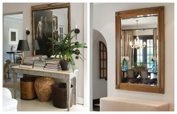 Τοποθετημένος ελεύθερα και απλά στηριγμένος στον τοίχο ή κρεμασμένος πάνω σε αυτόν ένας μεγάλων διαστάσεων καθρέφτης πολύ συχνά είναι ιδανικότερη διακοσμητική επιλογή σε σχέση με κάδρα, πίνακες κλπ αρκεί να είναι αισθητικά ο κατάλληλος για το συγκεκριμένο σημείο και ταιριαστός με την συνολική διαμόρφωση-διακόσμηση του χώρου.